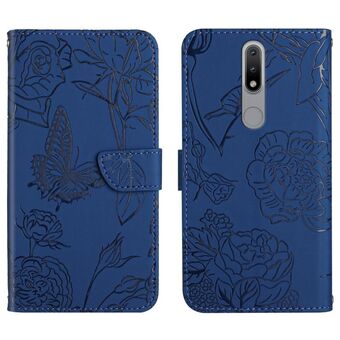 For Nokia 2.4 Skin Feel Butterfly Peony Embossed Leather Phone Case(Blue)