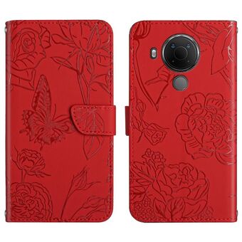 For Nokia 5.4 Skin Feel Butterfly Peony Embossed Leather Phone Case(Red)