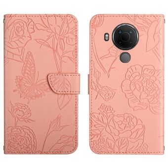 For Nokia 5.4 Skin Feel Butterfly Peony Embossed Leather Phone Case(Pink)