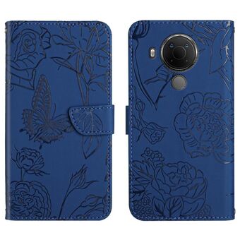 For Nokia 5.4 Skin Feel Butterfly Peony Embossed Leather Phone Case(Blue)