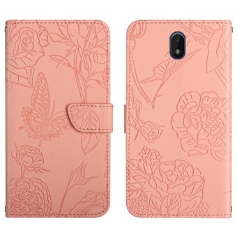 For Nokia C01 Plus Skin Feel Butterfly Peony Embossed Leather Phone Case(Pink)