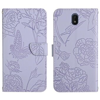 For Nokia C01 Plus Skin Feel Butterfly Peony Embossed Leather Phone Case(Purple)