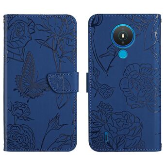 For Nokia 1.4 Skin Feel Butterfly Peony Embossed Leather Phone Case(Blue)