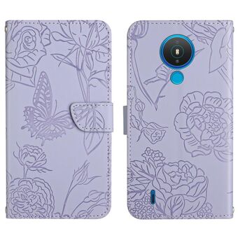 For Nokia 1.4 Skin Feel Butterfly Peony Embossed Leather Phone Case(Purple)