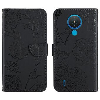 For Nokia 1.4 Skin Feel Butterfly Peony Embossed Leather Phone Case(Black)