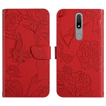 For Nokia 2.4 Skin Feel Butterfly Peony Embossed Leather Phone Case(Red)