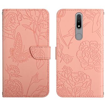 For Nokia 2.4 Skin Feel Butterfly Peony Embossed Leather Phone Case(Pink)