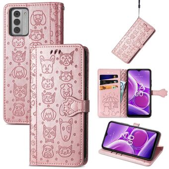 For Nokia G42 Cat and Dog Embossed Leather Phone Case(Rose Gold)