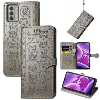 For Nokia G42 Cat and Dog Embossed Leather Phone Case(Grey)