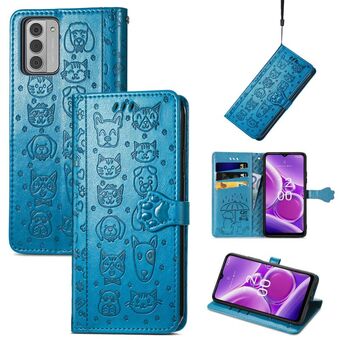 For Nokia G42 Cat and Dog Embossed Leather Phone Case(Blue)