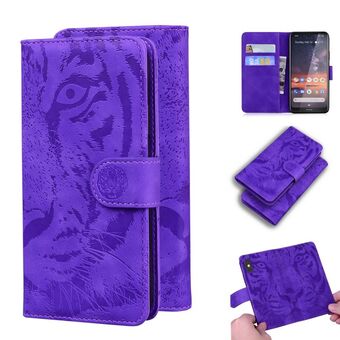 For Nokia 3.2 Tiger Embossing Pattern Horizontal Flip Leather Case with Holder & Card Slots & Wallet(Purple)