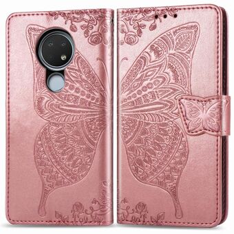 For Nokia 6.2 / 7.2 Butterfly Love Flower Embossed Horizontal Flip Leather Case with Bracket Lanyard Card Slot Wallet(Rose Gold)