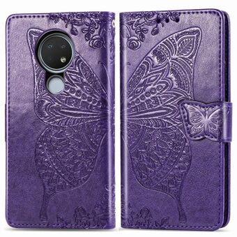 For Nokia 6.2 / 7.2 Butterfly Love Flower Embossed Horizontal Flip Leather Case with Bracket Lanyard Card Slot Wallet(Dark Purple)