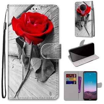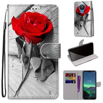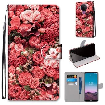 For Nokia 5.4 Coloured Drawing Cross Texture Horizontal Flip PU Leather Case with Holder & Card Slots & Wallet & Lanyard(Wood Red Rose)
