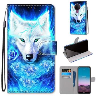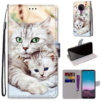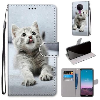 For Nokia 5.4 Coloured Drawing Cross Texture Horizontal Flip PU Leather Case with Holder & Card Slots & Wallet & Lanyard(White Kitten)