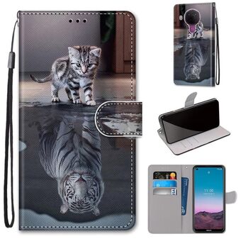 For Nokia 5.4 Coloured Drawing Cross Texture Horizontal Flip PU Leather Case with Holder & Card Slots & Wallet & Lanyard(Cat Becomes Tiger)