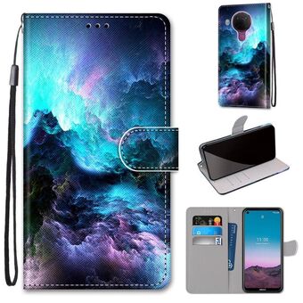 For Nokia 5.4 Coloured Drawing Cross Texture Horizontal Flip PU Leather Case with Holder & Card Slots & Wallet & Lanyard(Colorful Clouds)