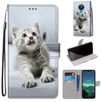 For Nokia 5.4 Coloured Drawing Cross Texture Horizontal Flip PU Leather Case with Holder & Card Slots & Wallet & Lanyard(Small Gray Cat)