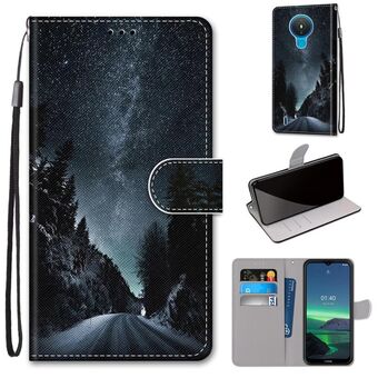 For Nokia 1.4 Coloured Drawing Cross Texture Horizontal Flip PU Leather Case with Holder & Card Slots & Wallet & Lanyard(Mountain Road Starry Sky)