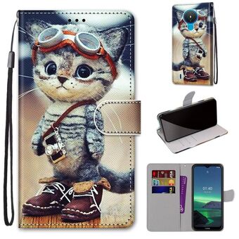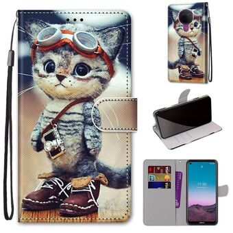 For Nokia 5.4 Coloured Drawing Cross Texture Horizontal Flip PU Leather Case with Holder & Card Slots & Wallet & Lanyard(Leather Shoes Cat)