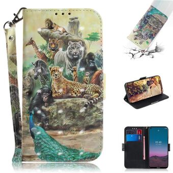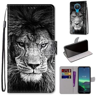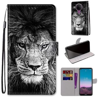 For Nokia 5.4 Coloured Drawing Cross Texture Horizontal Flip PU Leather Case with Holder & Card Slots & Wallet & Lanyard(Black White Lion Head)
