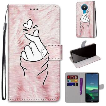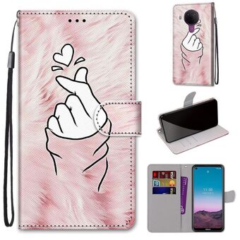 For Nokia 5.4 Coloured Drawing Cross Texture Horizontal Flip PU Leather Case with Holder & Card Slots & Wallet & Lanyard(Pink Hands Heart)