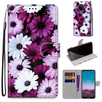 For Nokia 5.4 Coloured Drawing Cross Texture Horizontal Flip PU Leather Case with Holder & Card Slots & Wallet & Lanyard(Chrysanthemum Pink White Purple)