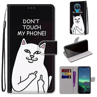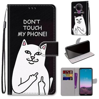 For Nokia 5.4 Coloured Drawing Cross Texture Horizontal Flip PU Leather Case with Holder & Card Slots & Wallet & Lanyard(Middle Finger White Cat)