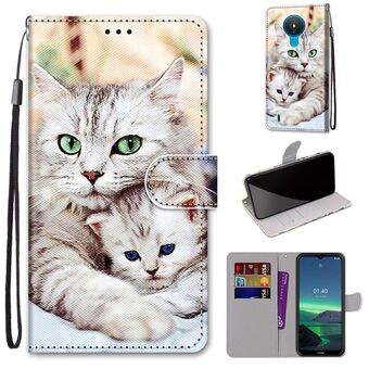 For Nokia 5.4 Coloured Drawing Cross Texture Horizontal Flip PU Leather Case with Holder & Card Slots & Wallet & Lanyard(Big Cat Holding Kitten)