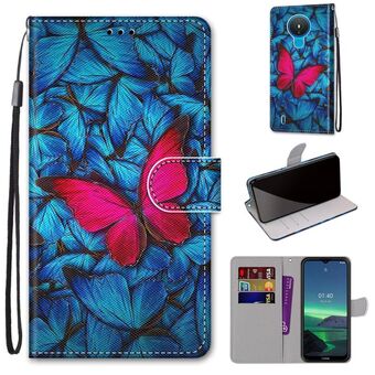 For Nokia 5.4 Coloured Drawing Cross Texture Horizontal Flip PU Leather Case with Holder & Card Slots & Wallet & Lanyard(Blue Red Butterfly)