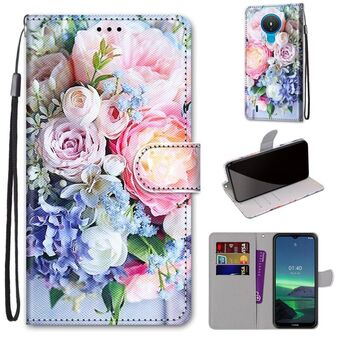 For Nokia 5.4 Coloured Drawing Cross Texture Horizontal Flip PU Leather Case with Holder & Card Slots & Wallet & Lanyard(Pink Rose Garden)
