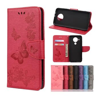 For Nokia 5.4 Butterflies Embossing Horizontal Flip Leather Case with Holder & Card Slots & Wallet(Red)