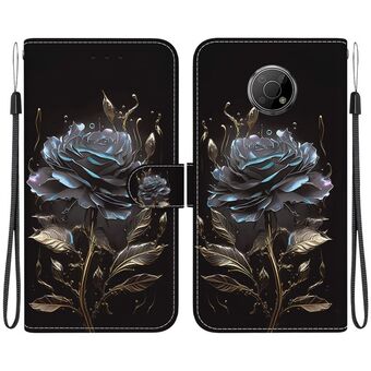 For Nokia G300 Crystal Texture Colored Drawing Leather Phone Case(Black Rose)