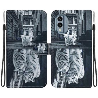 For Nokia X30 Crystal Texture Colored Drawing Leather Phone Case(Cat Tiger Reflection)