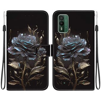 For Nokia X30 Crystal Texture Colored Drawing Leather Phone Case(Black Rose)