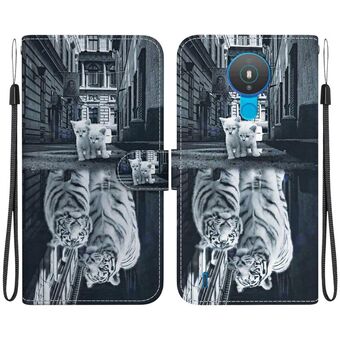 For Nokia G300 Crystal Texture Colored Drawing Leather Phone Case(Cat Tiger Reflection)