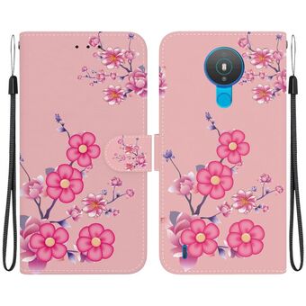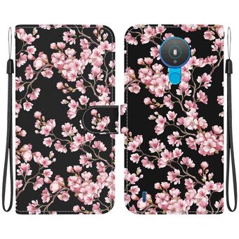 For Nokia 1.4 Crystal Texture Colored Drawing Leather Phone Case(Cherry Blossoms)