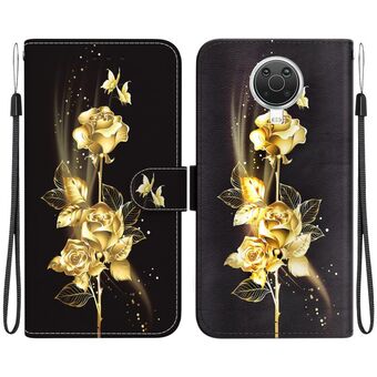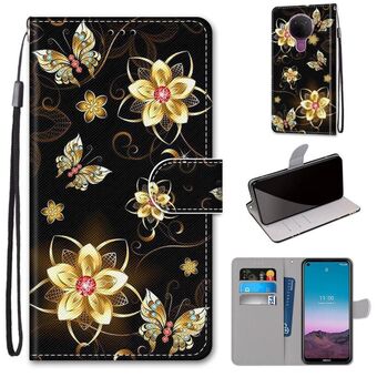 For Nokia 5.4 Coloured Drawing Cross Texture Horizontal Flip PU Leather Case with Holder & Card Slots & Wallet & Lanyard(Gold Diamond Butterfly)