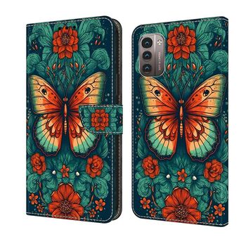 For Nokia G22 Crystal Painted Leather Phone case(Flower Butterfly)