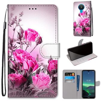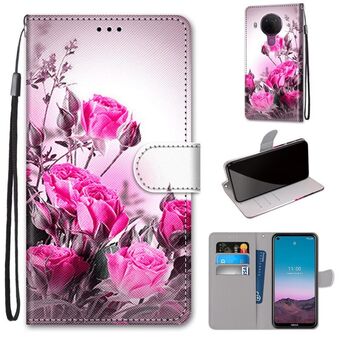 For Nokia 5.4 Coloured Drawing Cross Texture Horizontal Flip PU Leather Case with Holder & Card Slots & Wallet & Lanyard(Wild Rose)