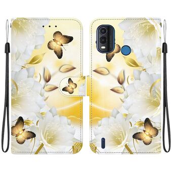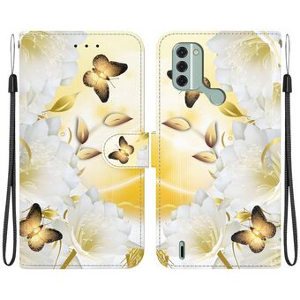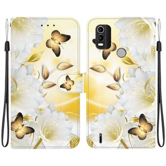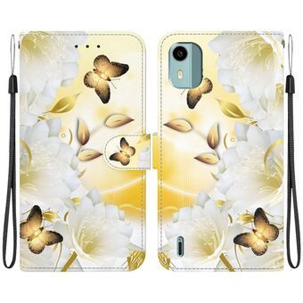 For Nokia C22 Crystal Texture Colored Drawing Leather Phone Case(Gold Butterfly Epiphyllum)