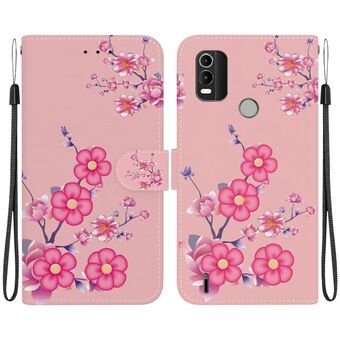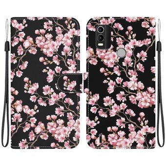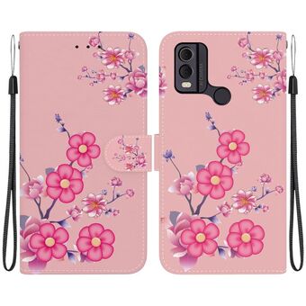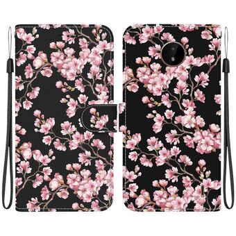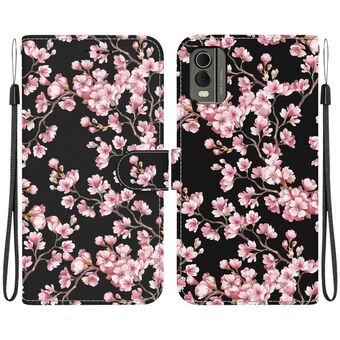 For Nokia C22 Crystal Texture Colored Drawing Leather Phone Case(Cherry Blossoms)