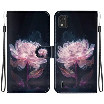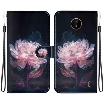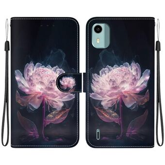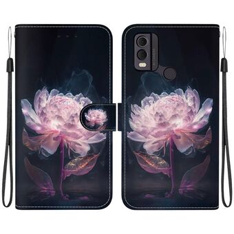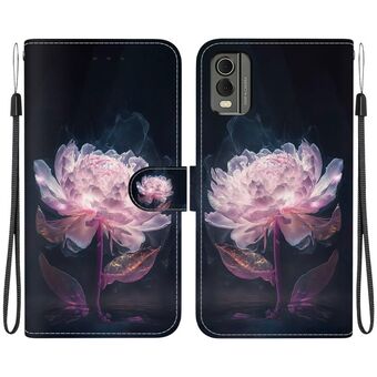 For Nokia C22 Crystal Texture Colored Drawing Leather Phone Case(Purple Peony)