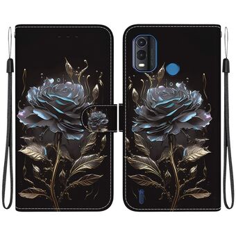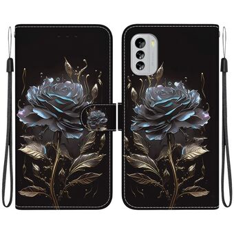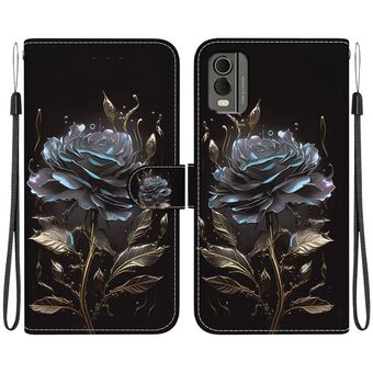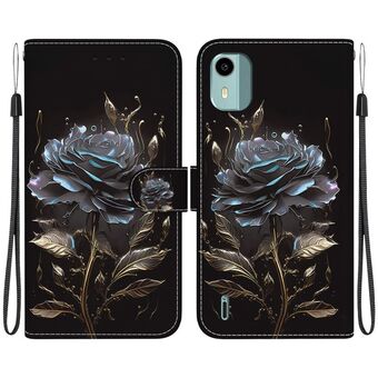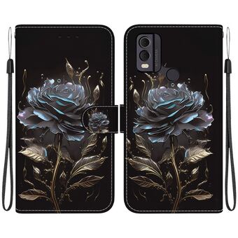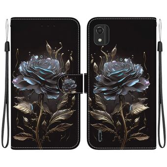 For Nokia C22 Crystal Texture Colored Drawing Leather Phone Case(Black Rose)