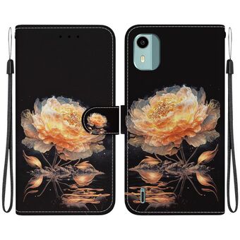 For Nokia C22 Crystal Texture Colored Drawing Leather Phone Case(Lily)