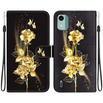 For Nokia C22 Crystal Texture Colored Drawing Leather Phone Case(Gold Butterfly Rose)