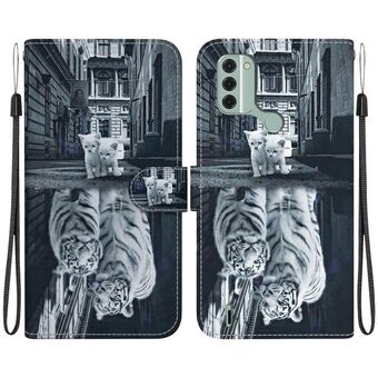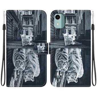 For Nokia C22 Crystal Texture Colored Drawing Leather Phone Case(Cat Tiger Reflection)