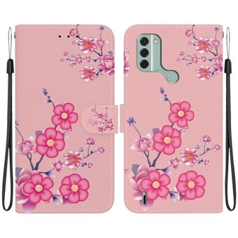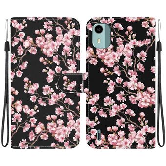 For Nokia C22 Crystal Texture Colored Drawing Leather Phone Case(Plum Bossom)