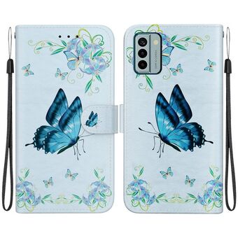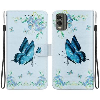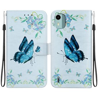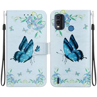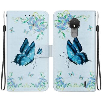 For Nokia C22 Crystal Texture Colored Drawing Leather Phone Case(Blue Pansies)