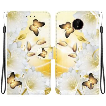 For Nokia C32 Crystal Texture Colored Drawing Leather Phone Case(Gold Butterfly Epiphyllum)